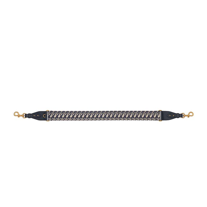 绣花肩带是独特的配件,可让您个性化一些Maison的包包。蓝色的Dior Oblique图案装饰在一侧,而另一侧则绣有CHRISTIAN DIOR签名。两端用蓝色小牛皮加固,并配有两个仿古金饰金属登山扣挂钩,可将其固定到您喜欢的包包中。巧妙地放置了一个金属环,以悬挂该系列的小型皮具创作。这款肩带可以戴在肩膀或斜挎包上,营造出非常个性化的风格。