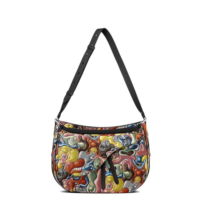 【包税】DIOR/迪奥 21秋冬新款SADDLE SOFT系列 男士KENNY SCHARF图案提花彩色帆布鞍形单肩手提包1ADHO022KSJ_H26E