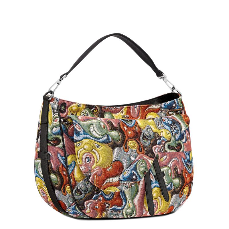 在与艺术家肯尼·沙夫(Kenny Scharf)的合作下,本季重新采用了提花帆布版本的马鞍软包,提花帆布版本采用了多色的迪奥和肯尼·沙夫(DIOR AND KENNY SCHARF)图案。前袋带有标志性线条,并带有DIOR签名,增强了其宽敞实用的格式。提手可通过可调节和可拆卸的肩带完成,以将其放在肩部,斜挎包或手中。