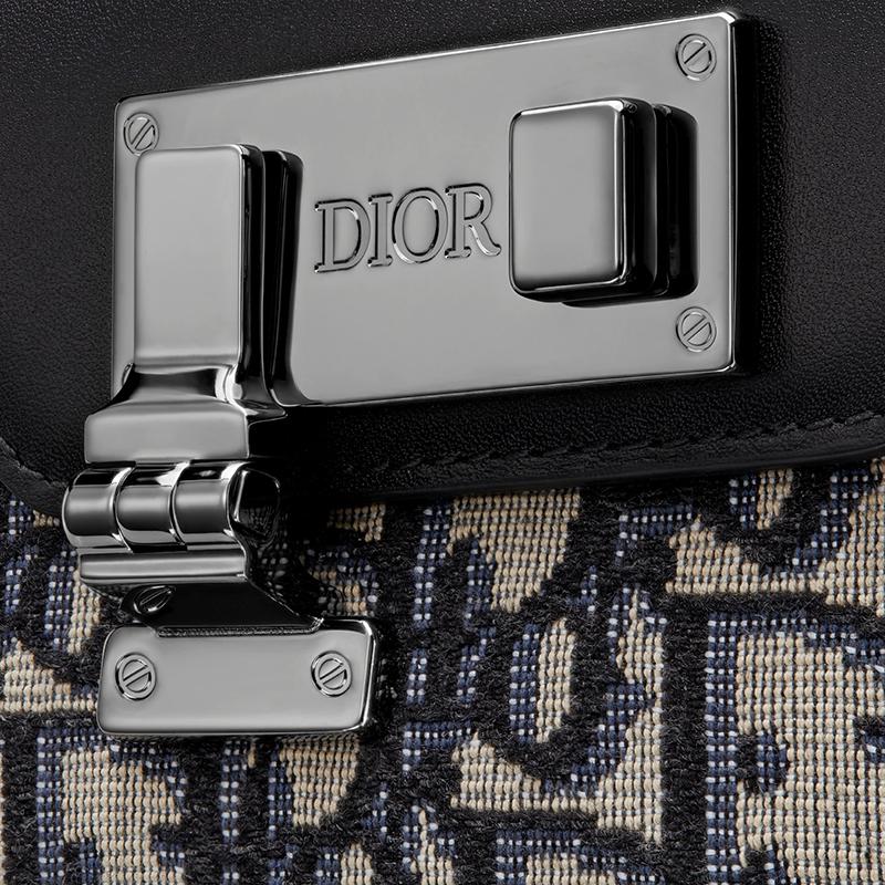 【包税】DIOR/迪奥 21秋冬新款 男士NANO米色黑色老花帆布黑色光滑小牛皮翻盖银扣单肩斜挎包2LXCA344UCT_H28E