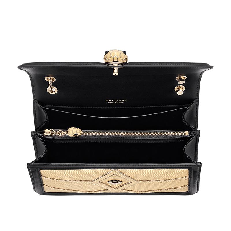 【包稅】BVLGARI/寶格麗2021春夏新款SERPENTI FOREVER系列女士米色酒椰葉纖維黑色小牛皮邊緣金色黃銅蛇頭錶扣單肩斜挎手提包290904