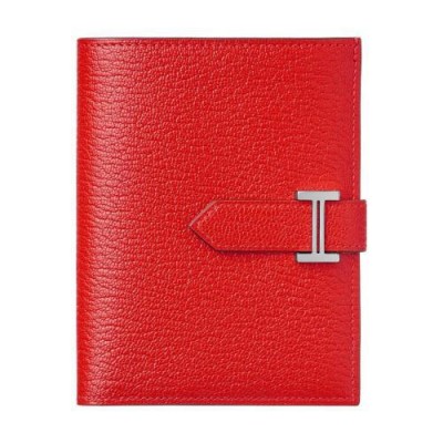 Portefeuille compact en chevre Mysore, ferme par une patte en cuir et un fermoir « H » ajoure argente palladiea l'interieur : un porte-monnaie avec fermeture a glissiere, quatre poches cartes de credit et quatre poche*esFabrique en France