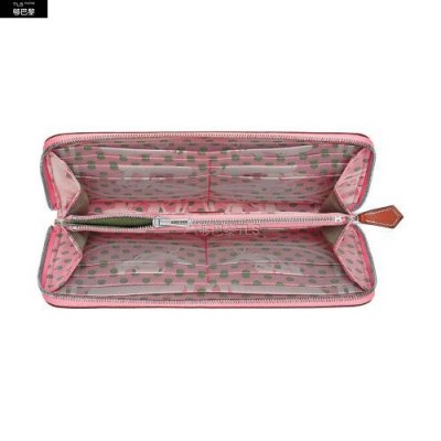 Portefeuille combine en veau Epsom et veau Barenia, double en twill de soie imprime « Brides de gala fantome a pois », fermeture a glissiere argentee palladiee.A l'interieur: une poche monnaie zippee, quatre poche*es et douze poches cartes de credit