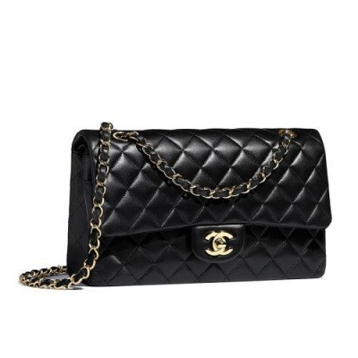 【包税】 经典爆款预定1个月发货 CHANEL/香奈儿 经典款CF 女士中号黑金小羊皮链条单肩包 A01112