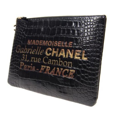 首頁 > 箱包配飾 > 香奈兒 > Chanel/香奈兒20春夏中性黑色仿鱷魚皮金扣手拿包