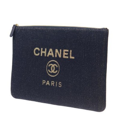 首頁 > 箱包配飾 > 香奈兒 > 【包稅】Chanel/香奈兒女士藍色經典logo標識帆布手拿包
