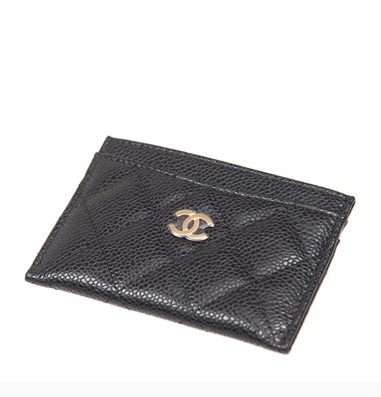 【包税】Chanel/香奈儿 女士经典菱纹黑色牛皮logo标夹层卡包卡片夹