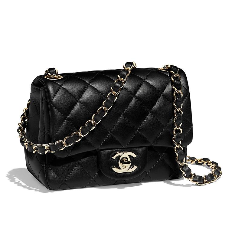 【包稅】CHANEL/香奈兒經典黑色滑面小羊皮金扣鏈條方胖子迷你單肩包A35200Y0405994305