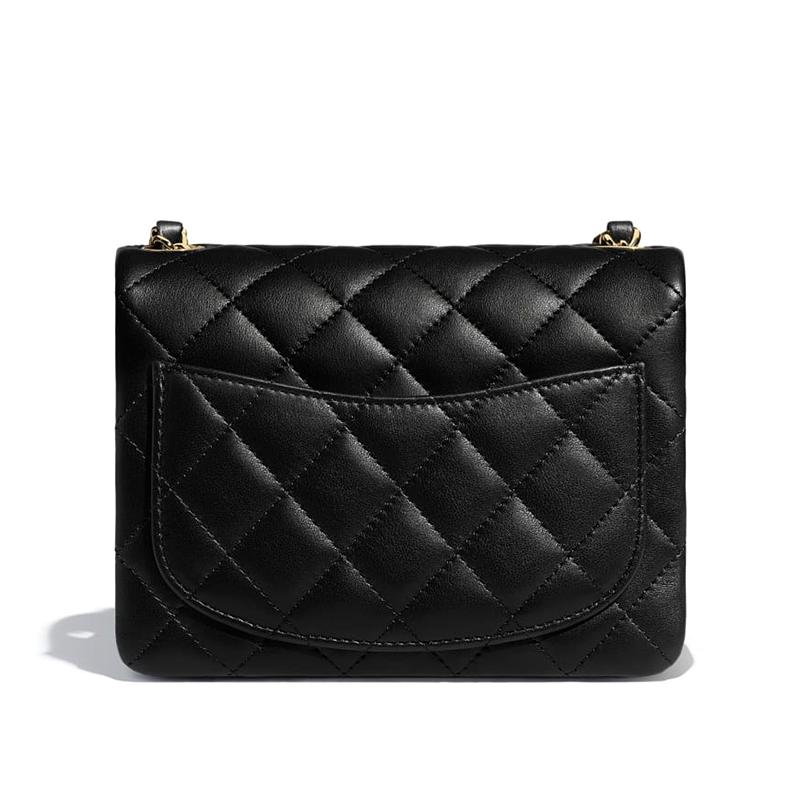 【包税】CHANEL/香奈儿 经典黑色滑面小羊皮金扣链条方胖子迷你单肩包A35200Y0405994305