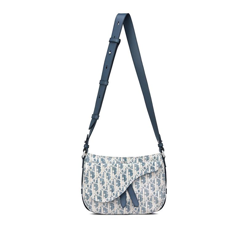 【包稅】DIOR/迪奧2021春夏新款SADDLE SOFT系列男士迷你藍色斜紋Kasuri提花帆布拉鍊開合可拆卸手柄單肩斜挎手提包1ADHO024UTK_H00E