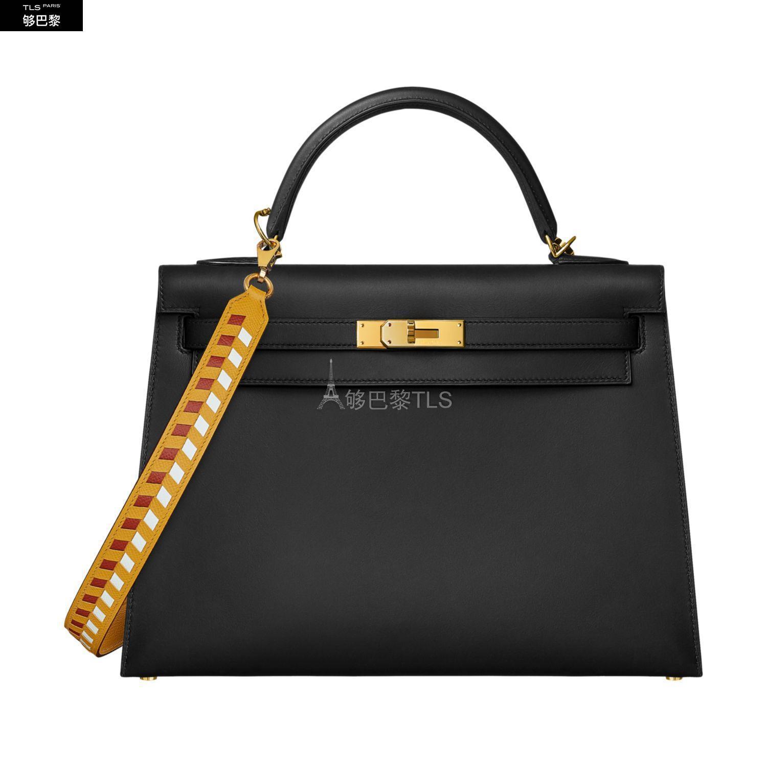 Bandouliere en veau Epsom, bijouterie plaquee or, grand mousqueton Bandouliere convenant aux modeles Kelly et Bolide