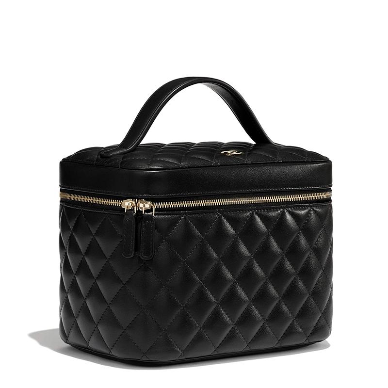 【包税】预售两周 CHANEL/香奈儿 经典款vanity系列 黑色棱纹小羊皮金色金属手提化妆包A80913Y04059C3906