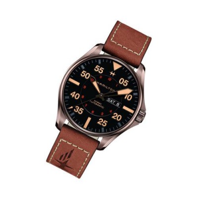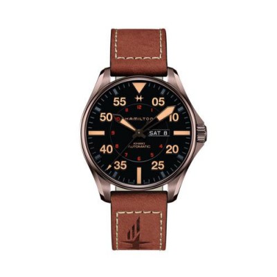 Hamilton/漢密爾頓瑞士手錶卡其航空飛行員系列星際穿越同款自動機械男錶46mm黑盤深棕色皮帶H64705531