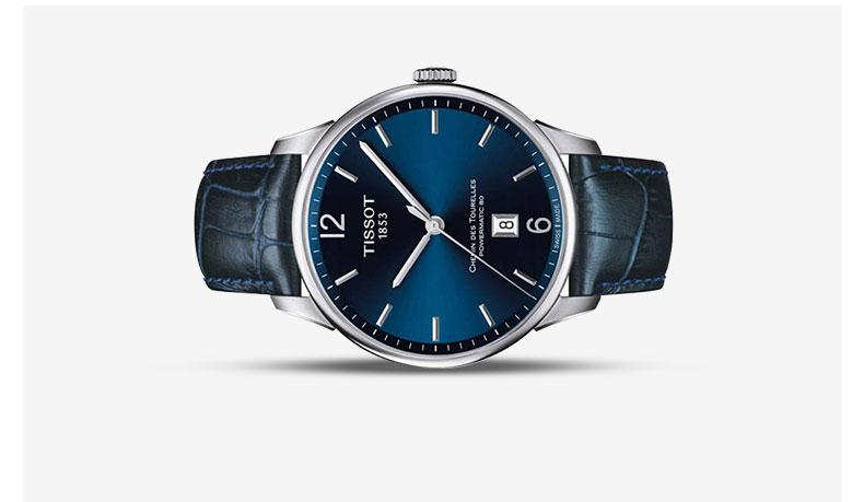 【正品盒裝】TISSOT/天梭杜魯爾系列藍盤數位與條丁刻度皮帶機械男錶T099.407.16.047.00