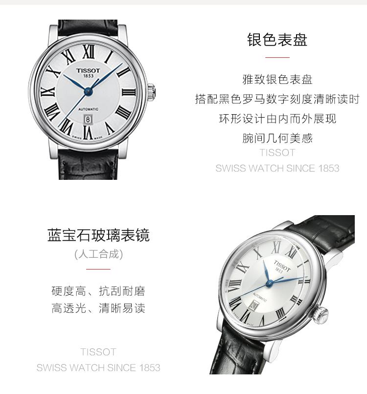 TISSOT/天梭瑞士手表 卡森臻我系列皮带自动机械女士腕表 皮带银盘T122.207.16.033.00