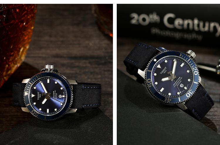 TISSOT/天梭瑞士手錶海星系列織物自動機械運動潜水男士腕表皮帶藍盤T120.407.17.041.01