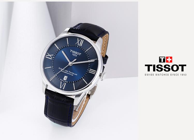 【正品盒裝】TISSOT/天梭杜魯爾系列藍盤羅馬與條丁刻度皮帶機械男錶T099.407.16.048.00