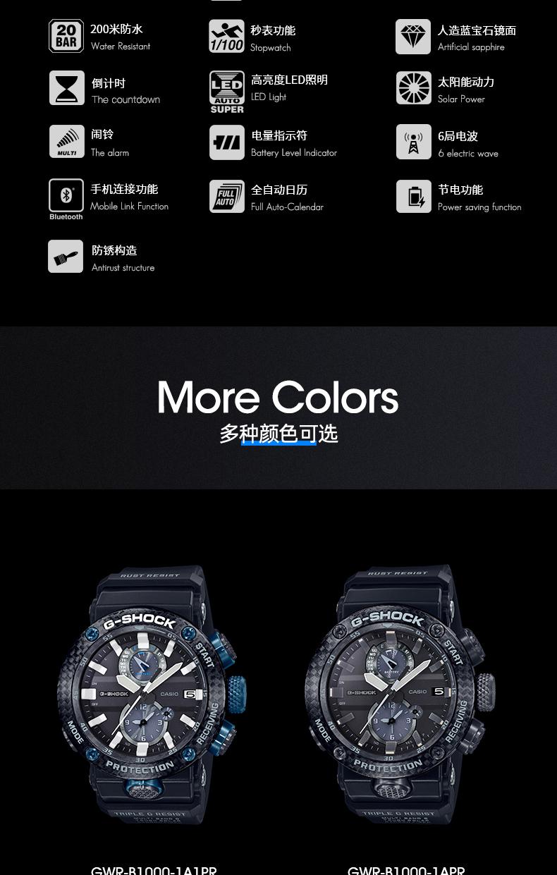 CASIO/卡西欧 G-SHOCK GWR-B1000时尚运动防水男表石英手表 GWR-B1000-1A1PR太阳能+六局电波