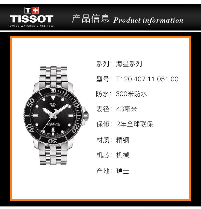 【正品盒装】TISSOT/天梭  海星系列 精钢 自动机械机芯 男表 T120.407.11.051.00