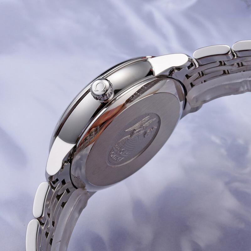 OMEGA/欧米茄瑞士手表 碟飞系列日历镶钻自动机械女士腕表 钢带银盘424.10.33.20.52.001