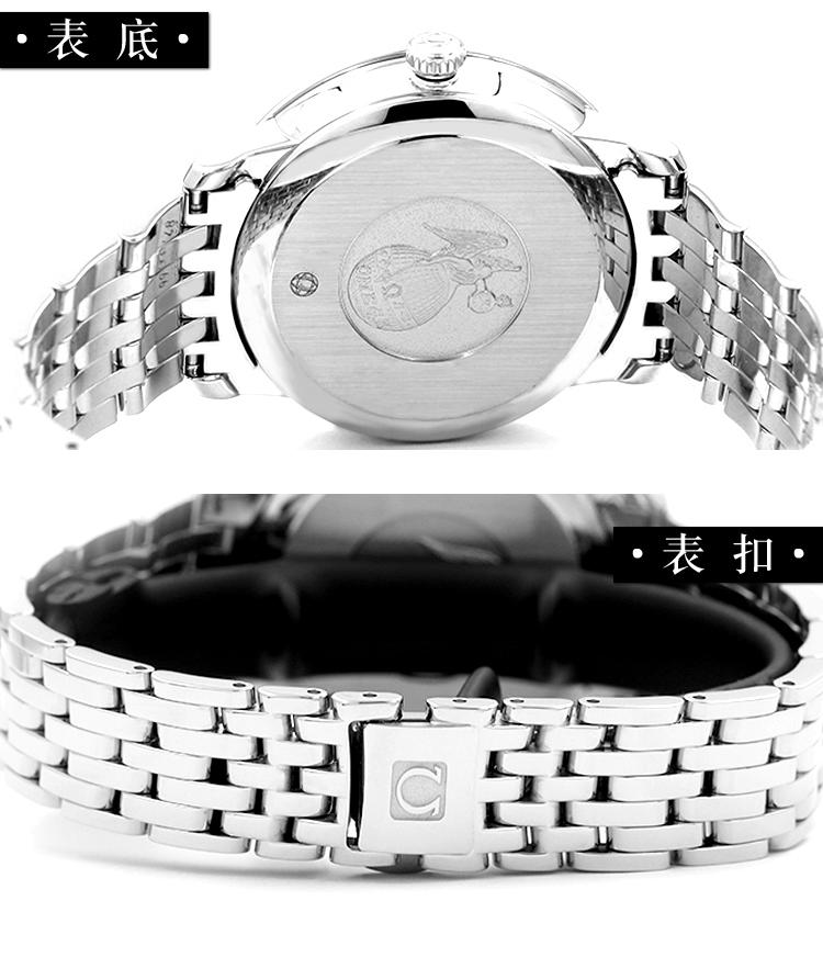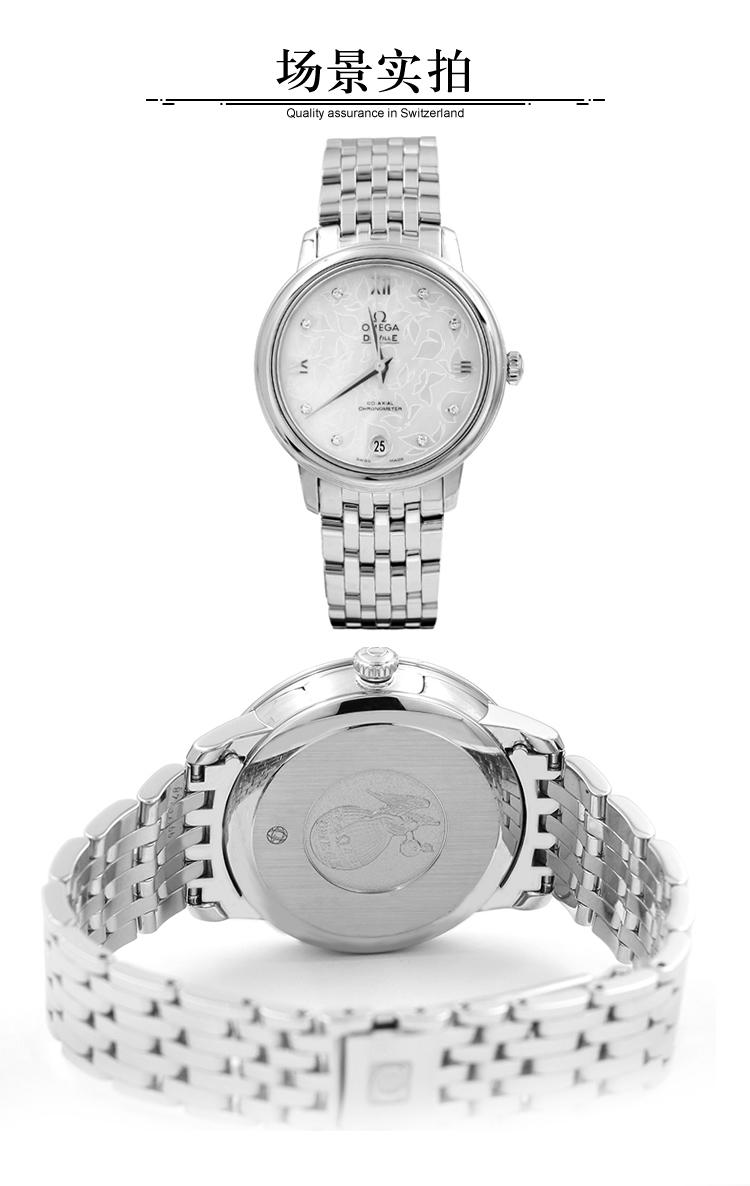 OMEGA/歐米茄瑞士手錶碟飛系列行事曆鑲鑽自動機械女士腕表鋼帶白盤424.10.33.20.55.001