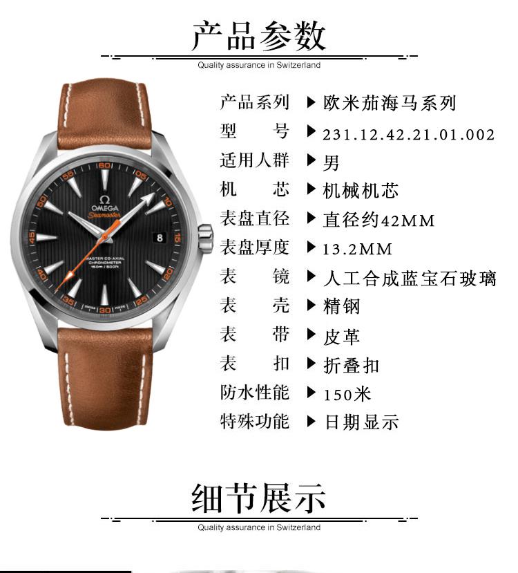 OMEGA/歐米茄瑞士手錶海馬系列行事曆自動機械男士腕表皮帶黑盤231.12.42.21.01.002