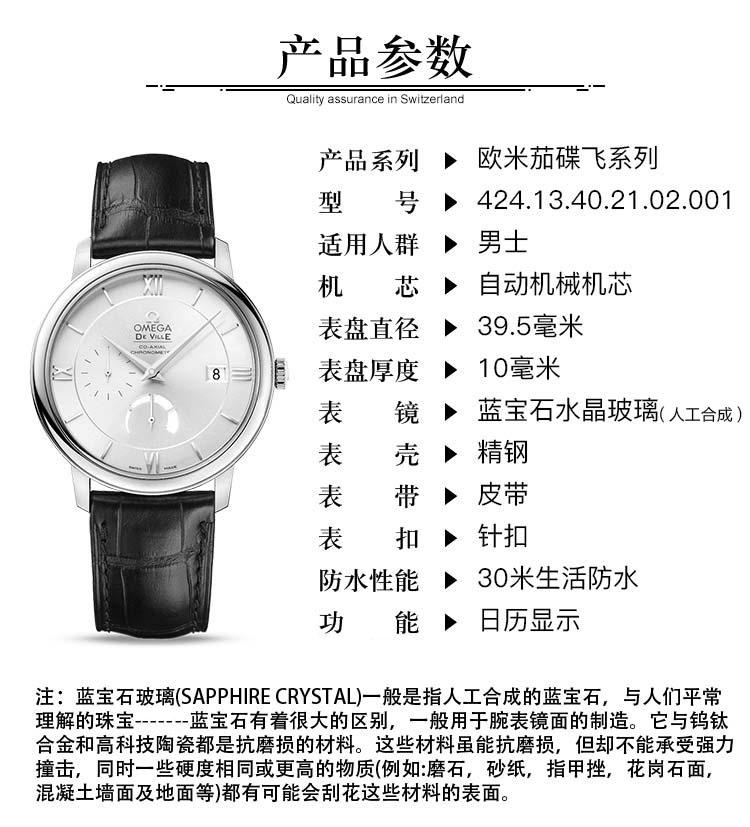 OMEGA/欧米茄瑞士手表 碟飞系列自动机械男士腕表 皮带银盘424.13.40.21.02.001
