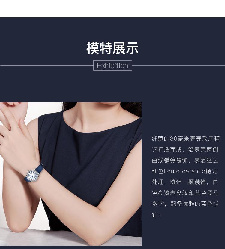 OMEGA/欧米茄瑞士手表 碟飞系列镶钻石英女士腕表 皮带蓝盘428.17.36.60.04.001