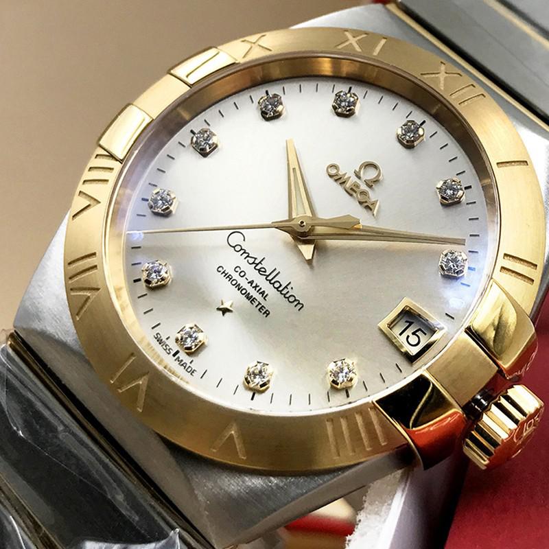 OMEGA/歐米茄瑞士手錶星座系列行事曆鑲鑽自動機械防水男士腕表鋼帶銀盤123.20.38.21.52.002