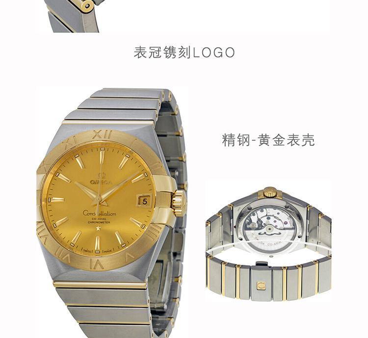 OMEGA/欧米茄瑞士手表 星座系列日历自动机械男士腕表 钢带金盘123.20.38.21.08.001