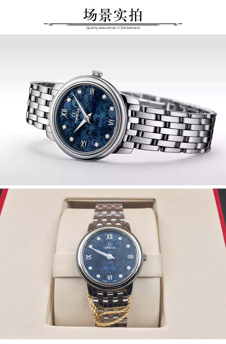 OMEGA/歐米茄瑞士手錶碟飛系列鑲鑽石英機芯女士腕表鋼帶藍盤424.10.27.60.53.003