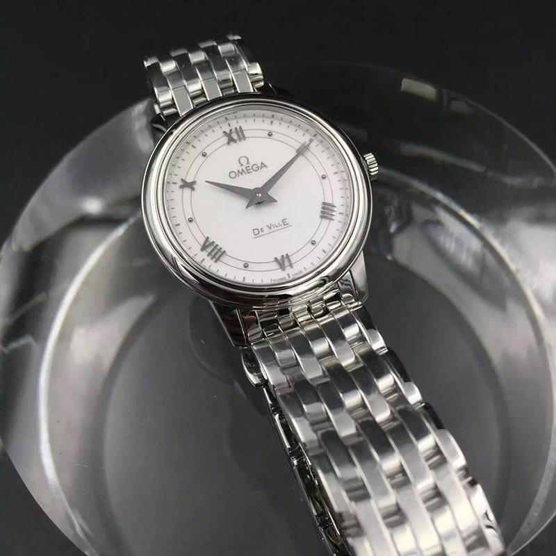OMEGA/歐米茄瑞士手錶碟飛系列羅馬刻度石英機芯女士腕表鋼帶白盤424.10.27.60.04.001