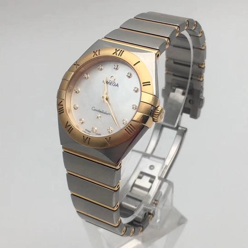OMEGA/歐米茄瑞士手錶星座系列曼哈頓鑲鑽石英女士腕表鋼帶白盤131.20.28.60.55.002
