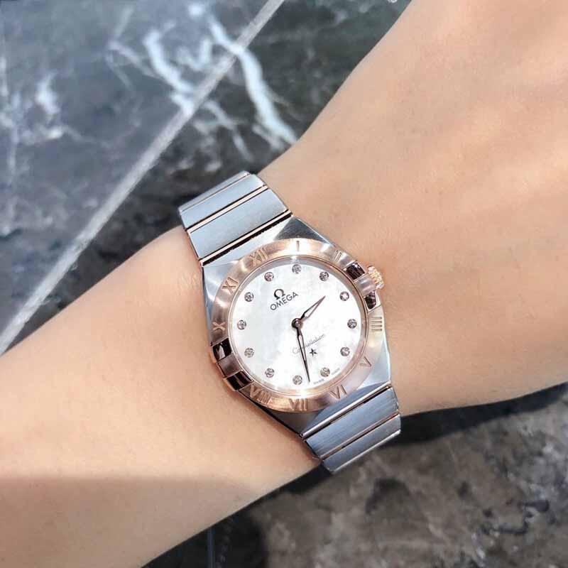 OMEGA/歐米茄瑞士手錶星座系列曼哈頓鑲鑽石英女士腕表鋼帶白盤131.20.28.60.55.001
