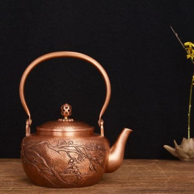 中藝盛嘉中藝堂收藏品孟德仁墨梅銅壺純手工紫銅壺燒水壺