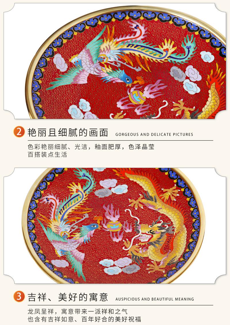中藝盛嘉景泰藍龍鳳呈祥觀賞盤裝潢盤銅胎掐絲琺瑯禮品家居擺件