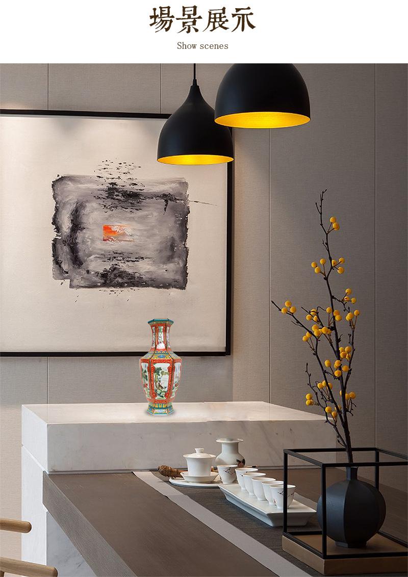 中藝盛嘉 景德镇珐琅彩六方瓶仿古手绘客厅摆件家居装饰品
