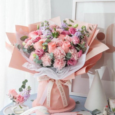 首頁 > 鮮花綠植 > 花禮 > 花禮/韓式系列/溫柔以待/粉色康乃馨13枝,戴安娜玫瑰/鮮花/七夕情人節禮物鮮花/當日達