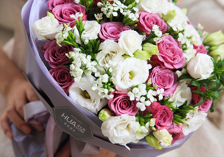 首頁 > 鮮花綠植 > 花禮 > 花禮/紫色的夢/冷美人紫玫瑰19枝,白色桔梗7枝/七夕情人節禮物鮮花送人/提前1天預訂