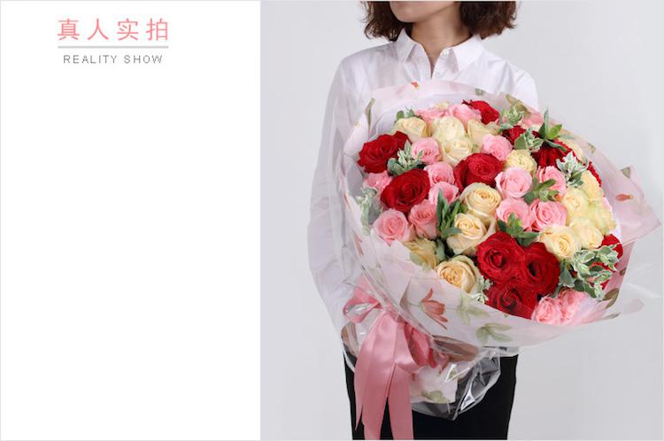 花礼/甜蜜纪事/各色玫瑰共50枝/七夕情人节礼物鲜花/当日达