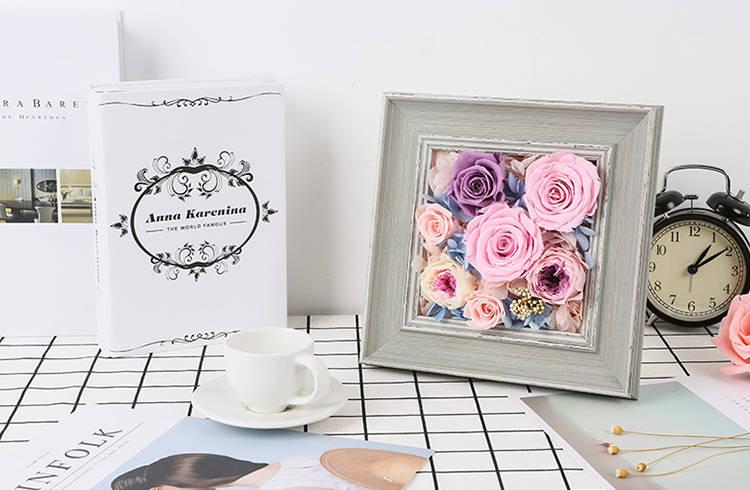 FLOWERSONG/时光的花/复古相框-进口粉色玫瑰、紫色玫瑰七夕情人节生日礼物