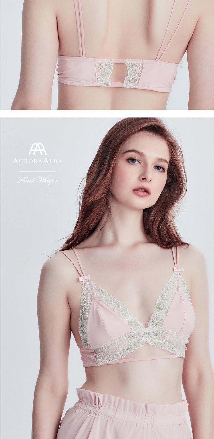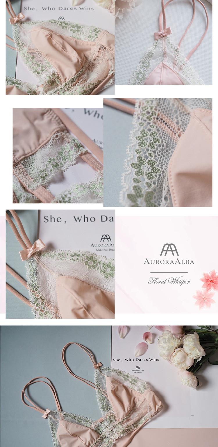 AURORAALBA/AuroraAlba女士文胸FloralWhisper-灰綠花朵蕾絲寬底圍鏤空裸粉三角全杯內衣