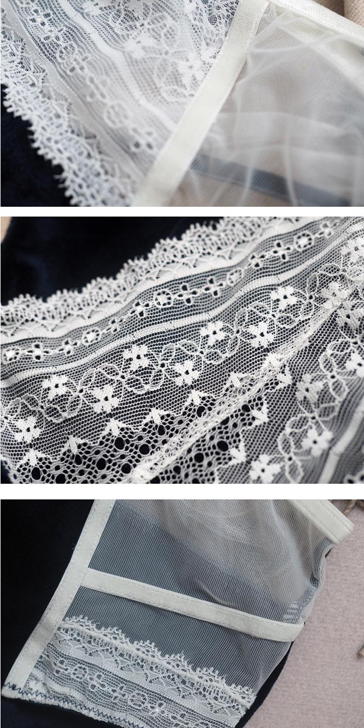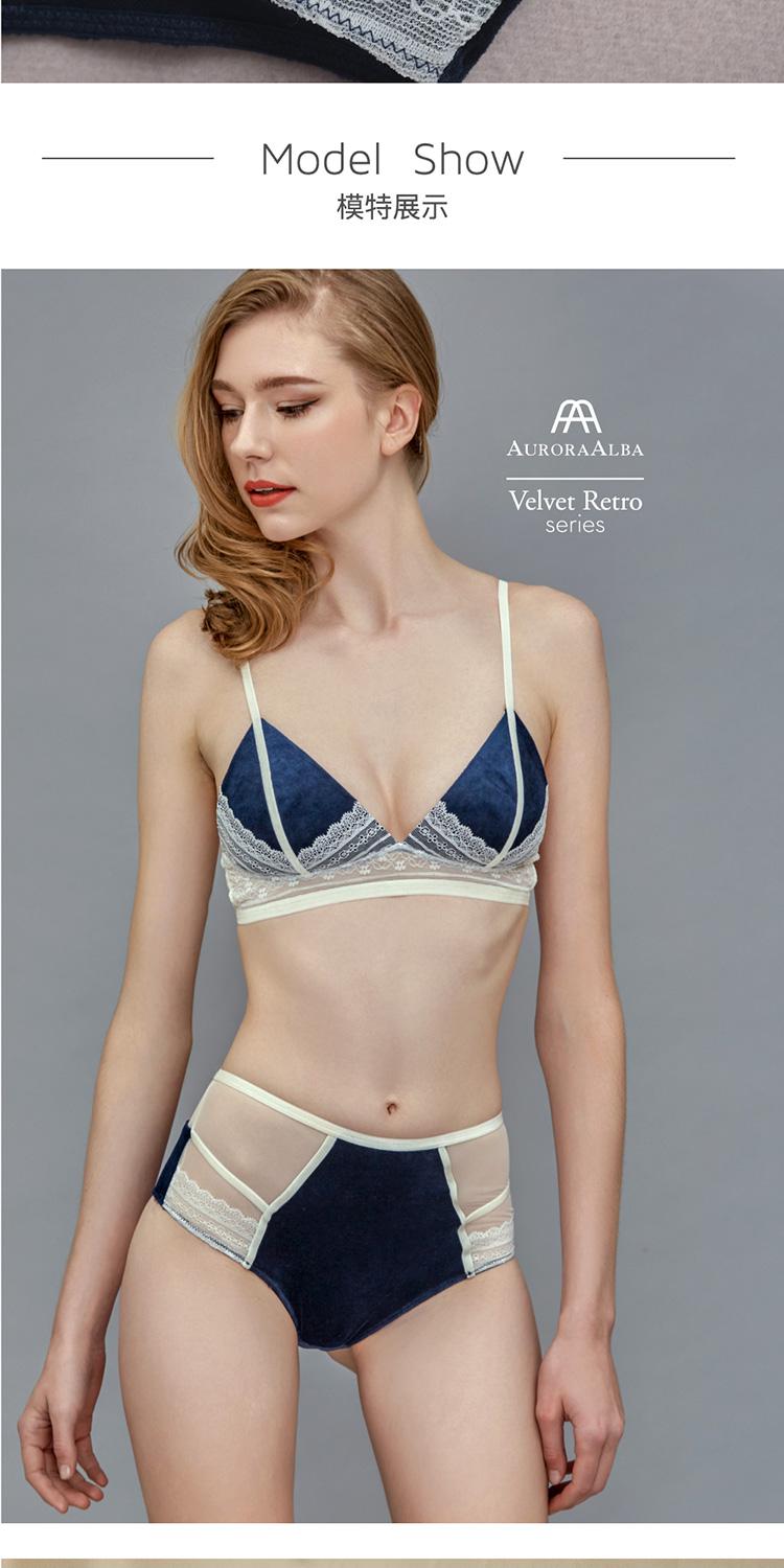 首頁 > 內衣 > AuroraAlba > 【DesignerWomenwear】AURORAALBA/AuroraAlba女士內衣AuroraAlba夜空藍天鵝絨拼復古絲絨乳白色蕾絲性感少女軟杯內衣高腰內褲套裝