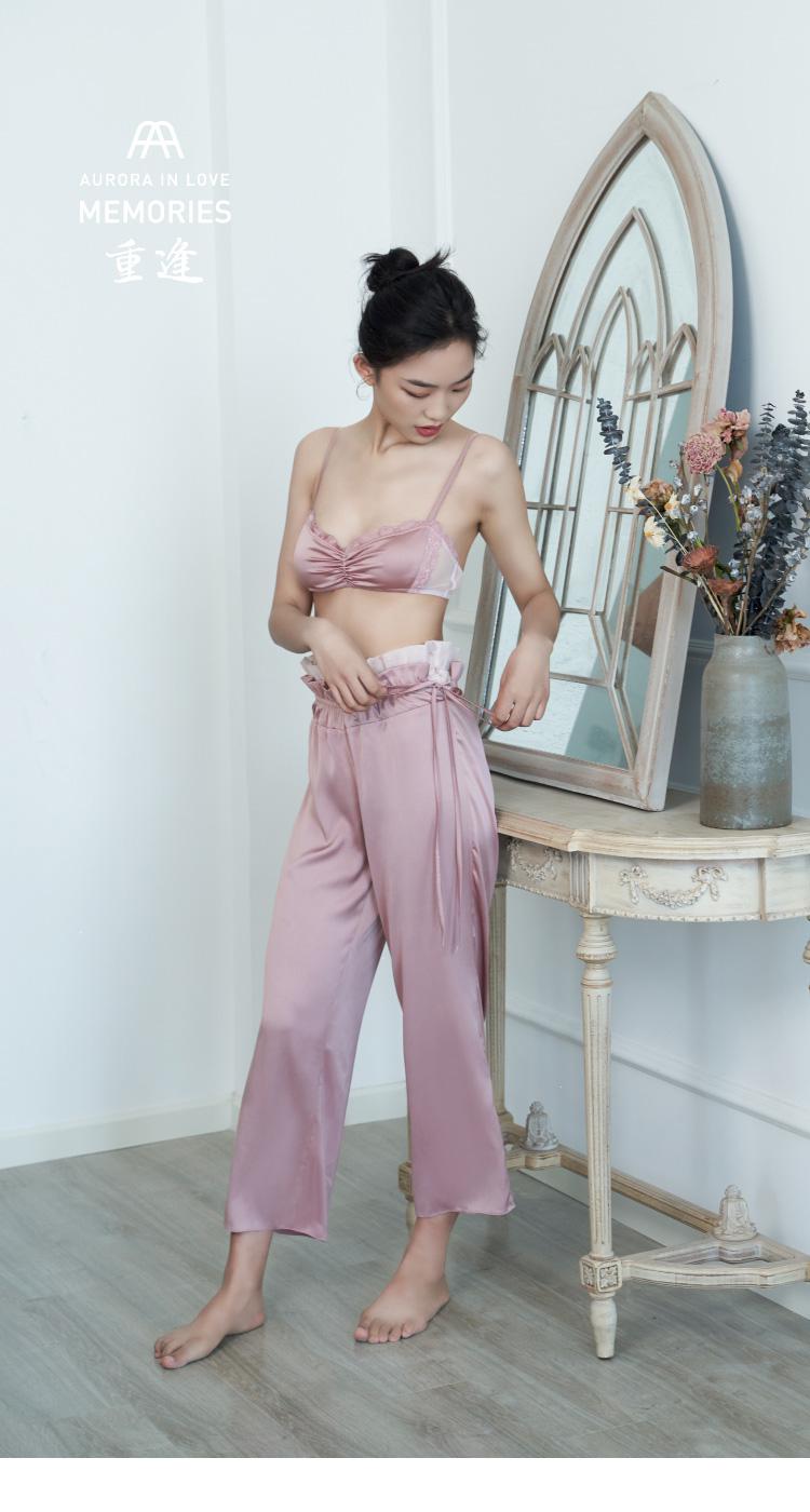 AURORAALBA/AuroraAlba烟粉玫瑰色蕾絲網紗拼接荷葉飛邊三角杯背心式內衣