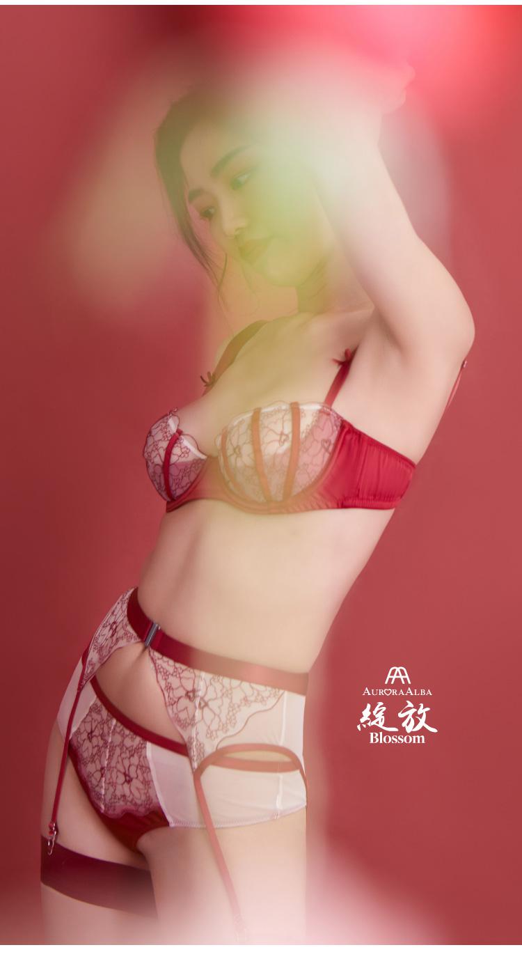 【21春夏】AuroraAlba情人节绽放酒渍玫瑰色色丁花边半杯钢圈内衣