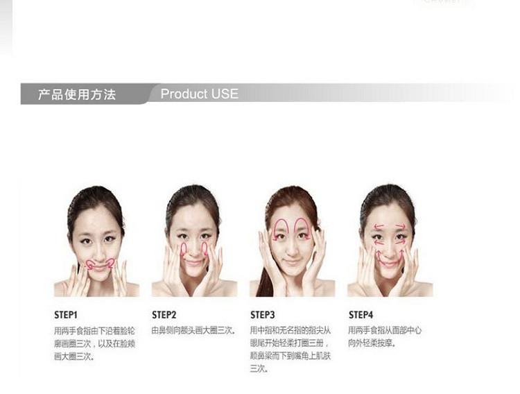 • 从脸部中央向外侧涂抹,手指轻柔缓慢地按摩。