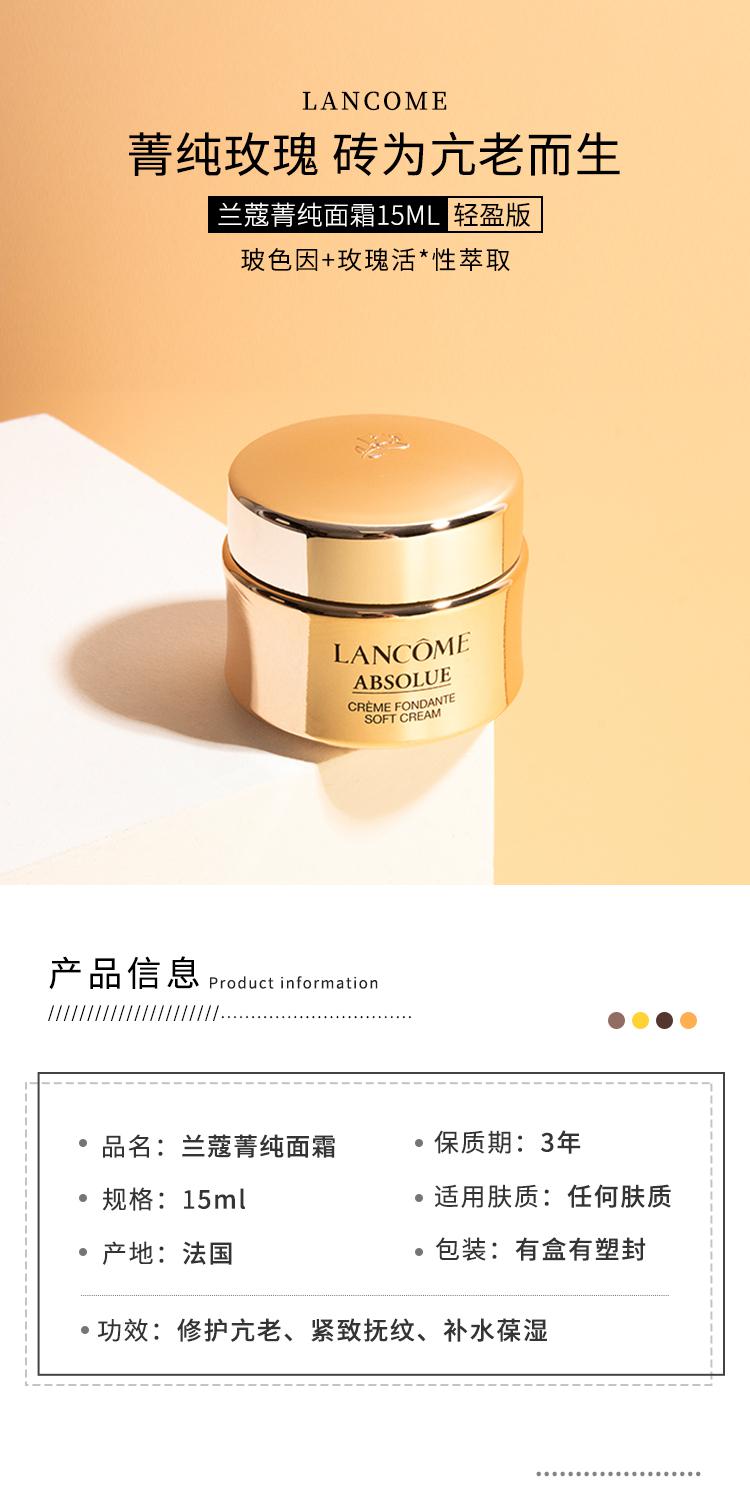 Lancome/兰蔻 菁纯臻颜精萃乳霜15ML -轻盈版 包装有非卖品/not for sale/促销品/试用装/请谨慎下单