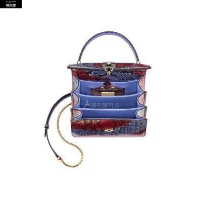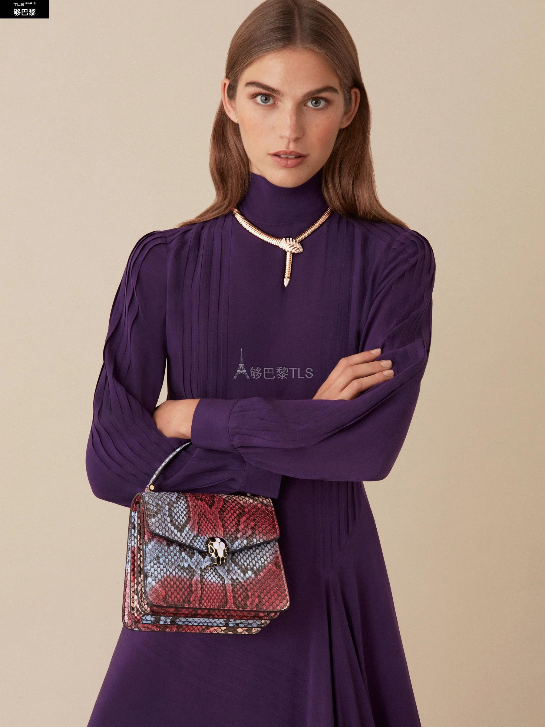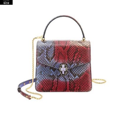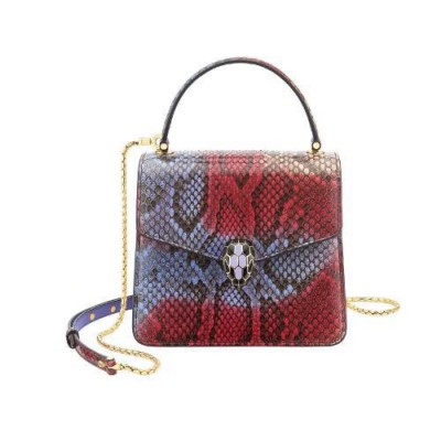 Le sac a main Serpenti Forever est revisite dans un es*W*prit plus contemporain, avec de nouvelles nuances et des materiaux chics pour la saison. Ce modele en python « Chimera » raffine multi*w*colore peint a la main illustre la capacite des artisans Bvlgari a transformer des materiaux precieux en des pieces intemporelles. Le seduisant fermoir Serpenti en email noir et couleur lilas Lavender hypnotise avec ses yeux en onyx au cha*W*rme envoutant. Sac a main dote de trois compartiments et d’une chaine en forme de serpent ajustable et amovible avec bandouliere en cuir pour un look polyvalent. Petit modele avec poche a miroir et poche ouverte a l'interieur, et une poche plaquee a l'exterieur a l’arriere. La plaque en metal ornee du logo Bvlgari a l'interieur et le miroir personnalisable completent l’ensemble a la perfection. Dimensions : 18 x 15 x 9,5 cm.