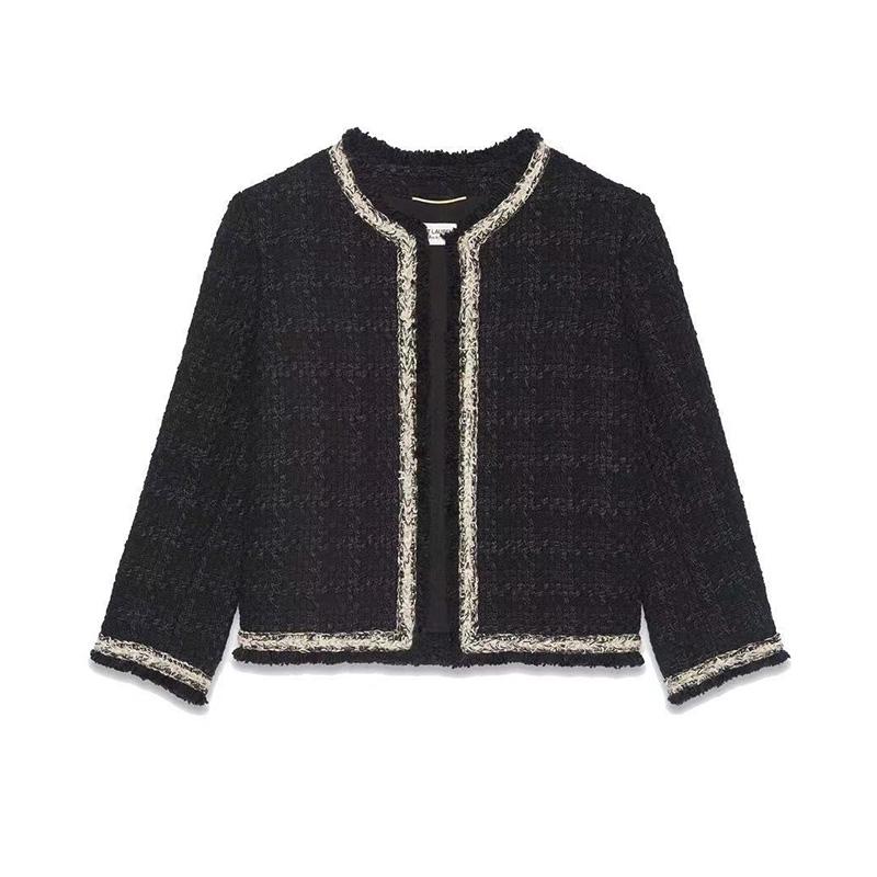 Yves saint Laurent/聖羅蘭女士黑色粗花短款休閒夾克653214 Y5C78 1000