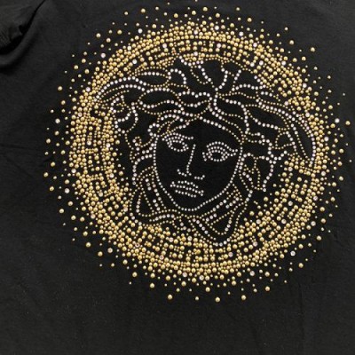 VERSACE/范思哲满天星水钻美杜莎黑色女士短袖T恤A79160A224620A92Y     bi